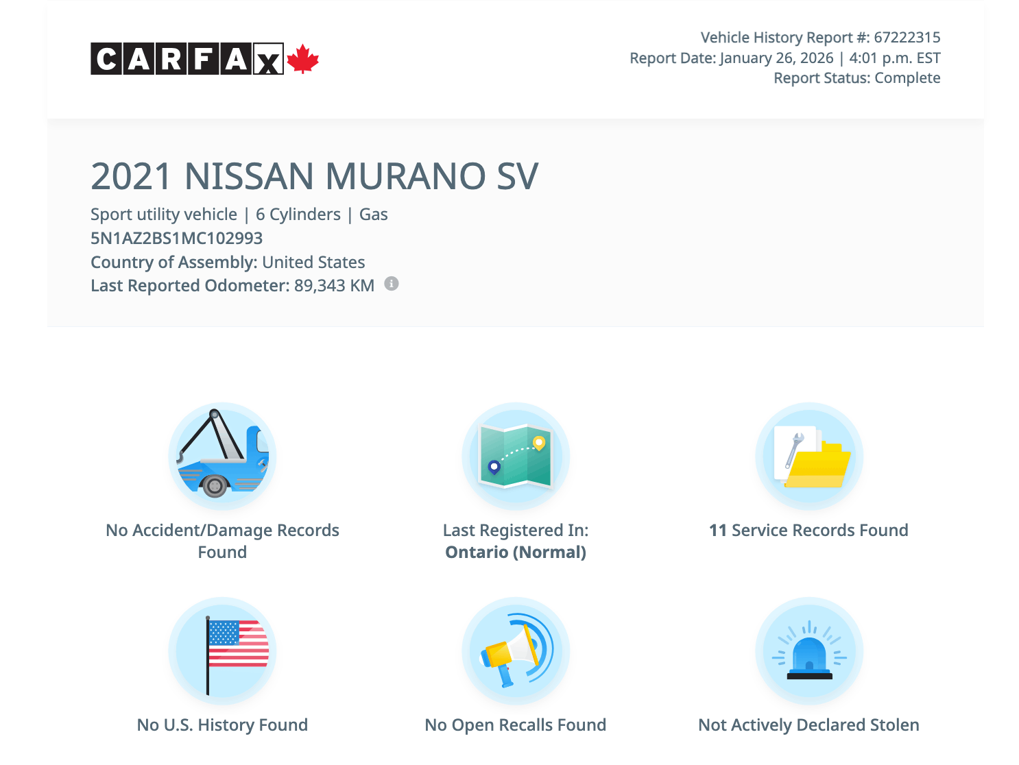 Mileage: 98,695 KM
